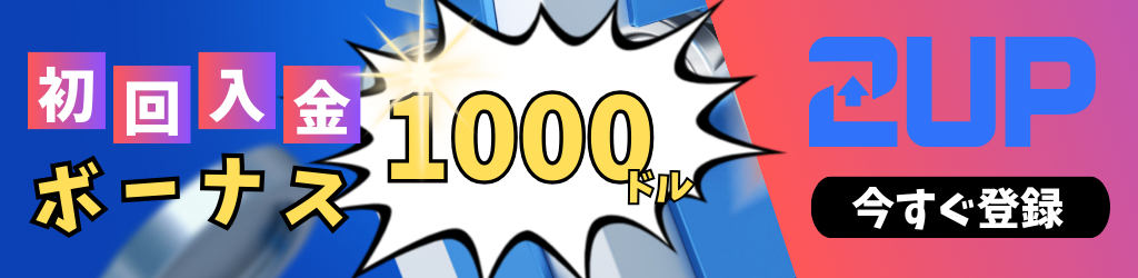 また、ツーアップアイオーでは初回入金から4回目までの入金に対応する200%初回入金ボーナスが用意されています。入金額以上の資金を元手に勝負ができるため、登録した際はぜひ活用してください!